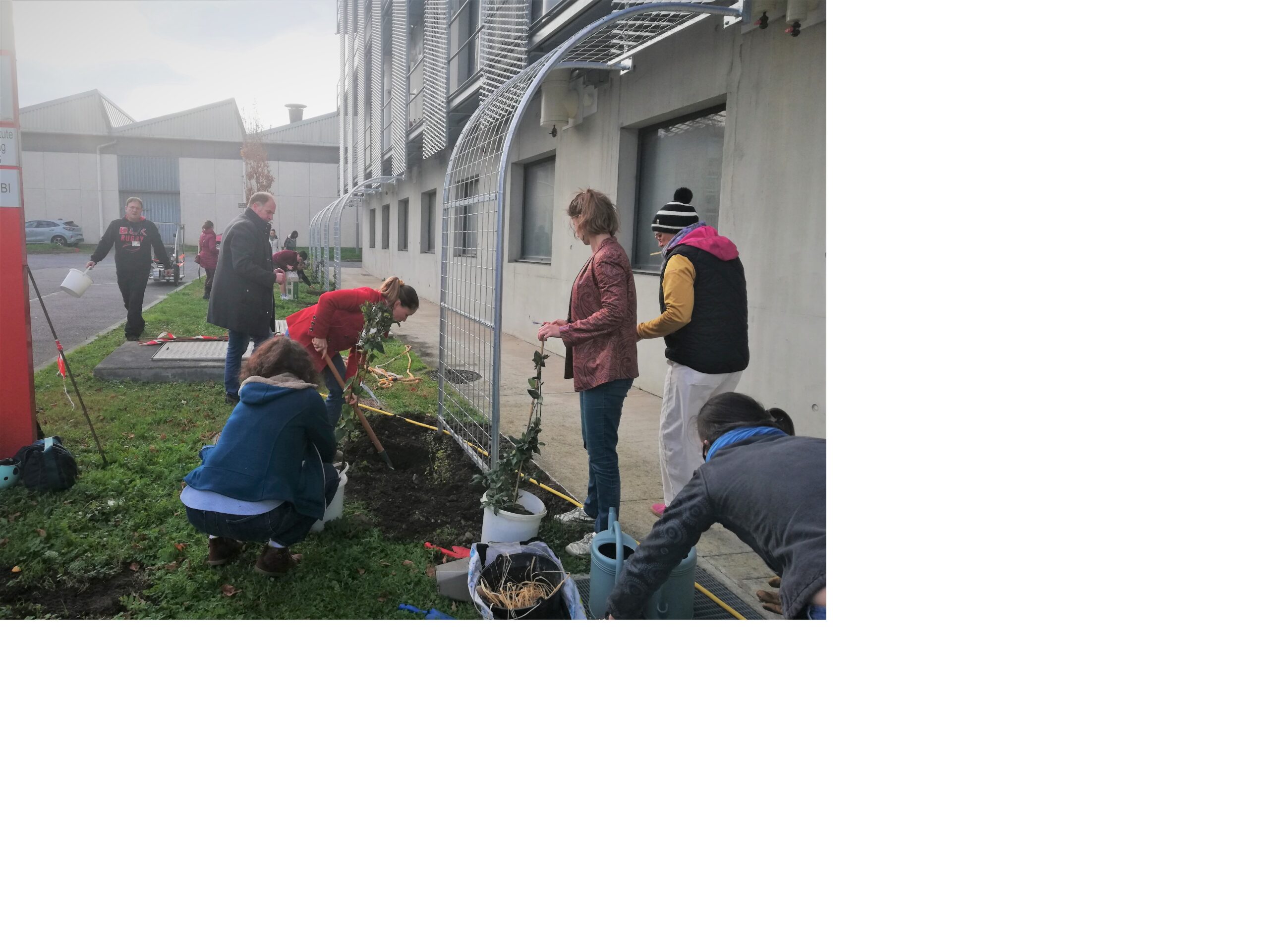Le jeudi 11 décembre 2025, grande effervescence à l’entrée de TBI pour l’inauguration des arches de la biodiversité.
